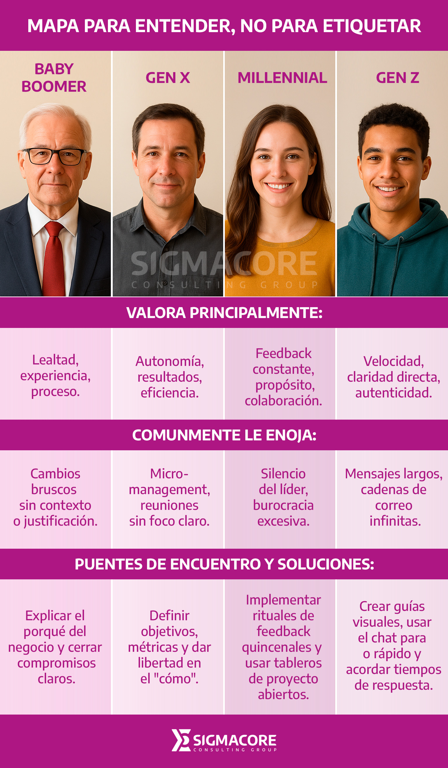El reto no es ?corregir personas?, sino alinear expectativas y canales. Asume este mapa como una guía para diseñar acuerdos.