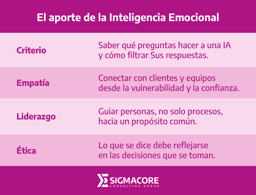 Este no es un llamado a rechazar la tecnología; eso sería absurdo. En el Núcleo Tecnología de SIGMACORE promovemos la IA como una aliada extraordinaria para ser más ágiles. La conversación correcta no es ?IA sí o no?, sino: ¿qué tipo de seres humanos la están usando?