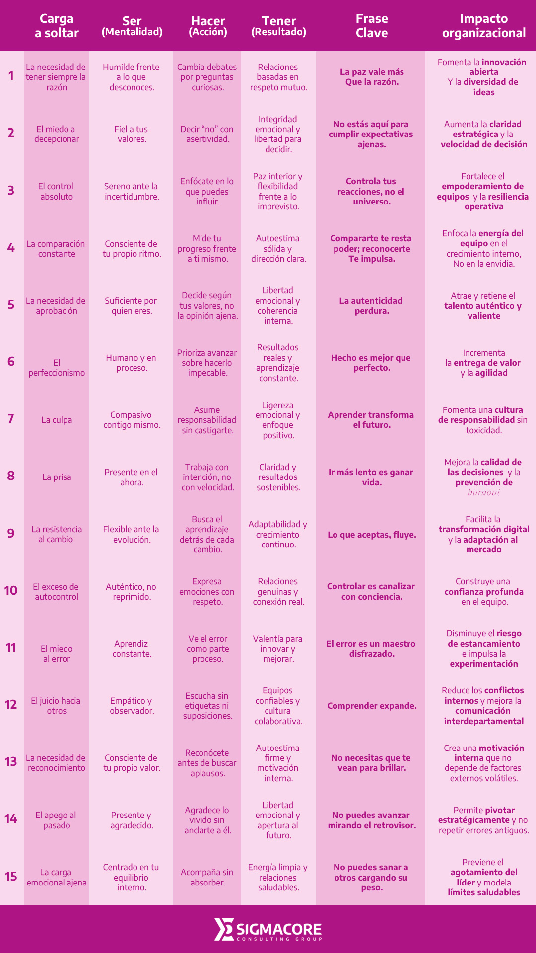 ¿Cuál de estas 15 cargas está limitando tu liderazgo o la efectividad de tu equipo? ¿Qué impacto tendría liberarla esta semana?