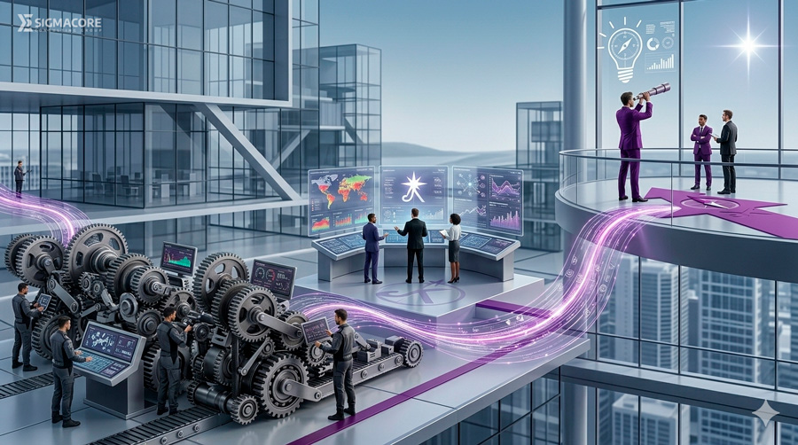 En SIGMACORE te ayudamos a diagnosticar y ordenar tu arquitectura organizacional para que estrategia, táctica y operación funcionen como un engranaje perfecto, no como una batalla diaria.